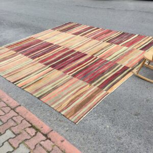 11X11 Boho Patchwork Kilim Rug , Retro Handmade Rug , 10’9″ X 11’1″ Oversize Turkish Rug R7095F66