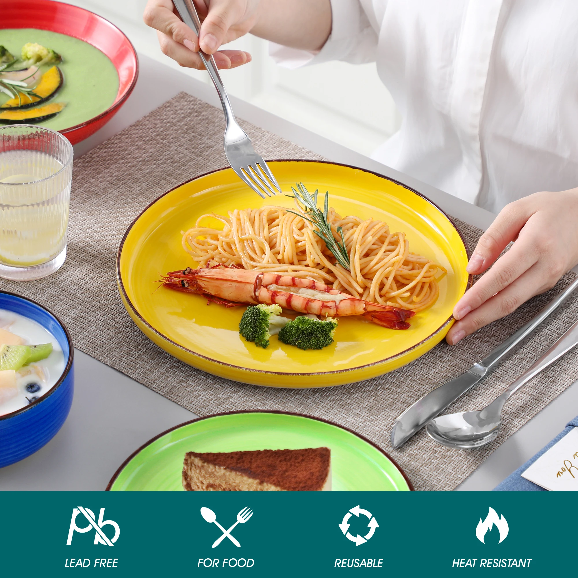 ►Strong and Healthy Crockery – Made from a high density stoneware, the plates are hard wearing to survive standard wear and tear and using a knife and fork. CERTIFIED MATERIAL, Premium NON-LEAD and NON-CADMIUM ceramic, NON-TOXIC and ECO-FRIENDLY; Microwave & Dishwasher Safe and no colour fading/cracking/warping after several runs through a dishwasher.