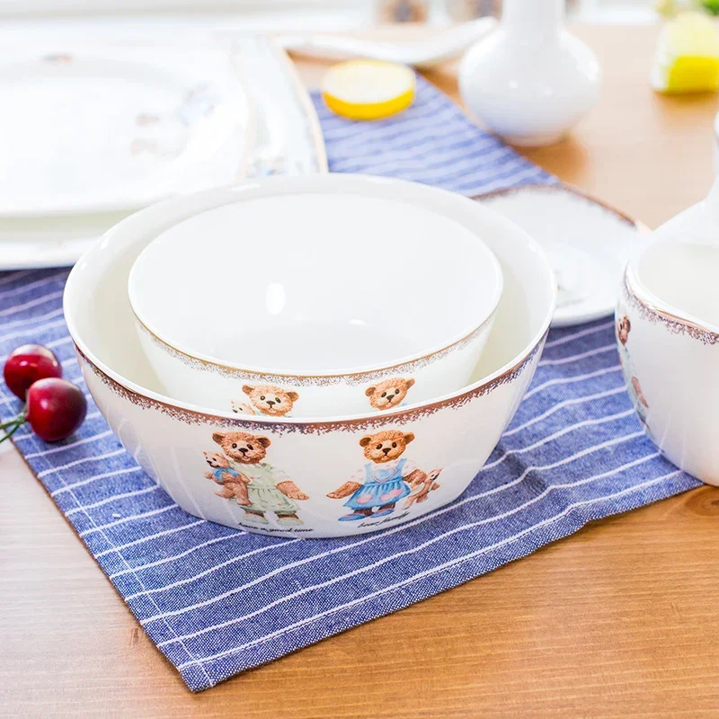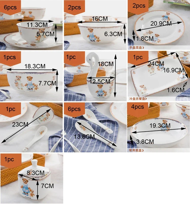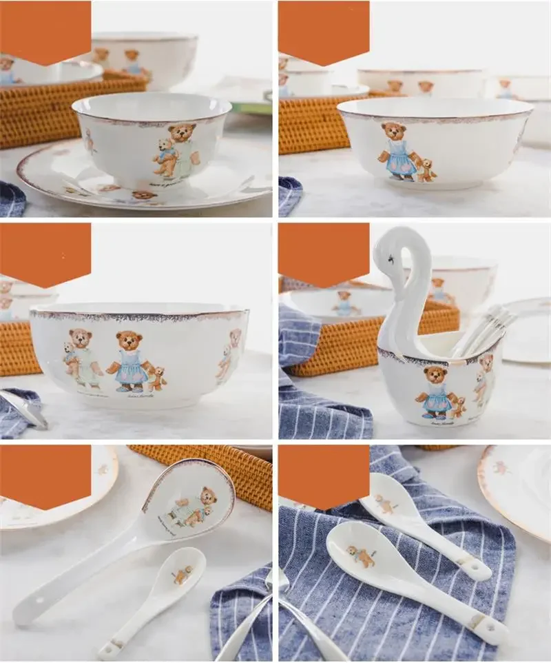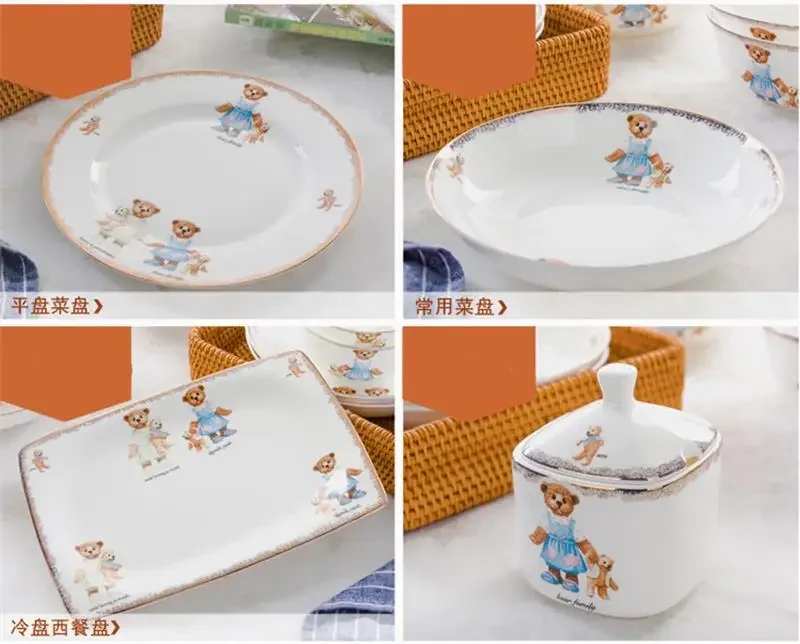 25pcs set, real bone china dinnerware set, cute bear painting, dinner chafing dish plate, ceramice kitchen food containers serve