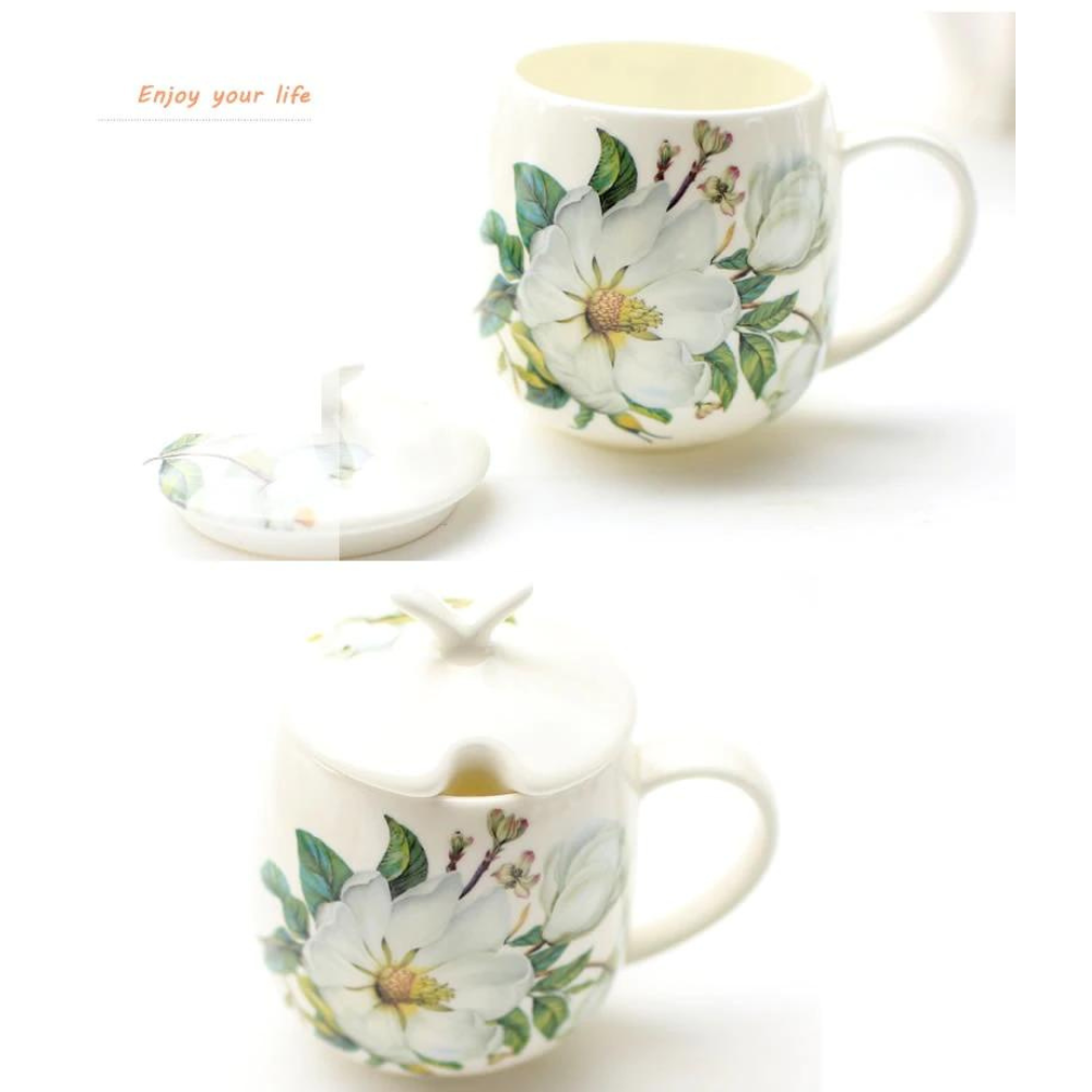 Bone China Coffee Cup Spoon Set 400ml Luxury Ceramic Mug Top-grade Porcelain Tea Cup Cafe Party Drinkware. Beautiful flower art