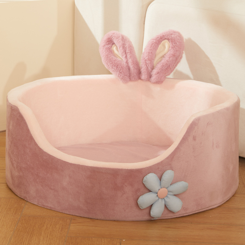 The dog nest cat nest typically has a round or oval shape with raised sides to create a cozy and secure sleeping space. The design provides a sense of comfort and privacy for your pet