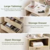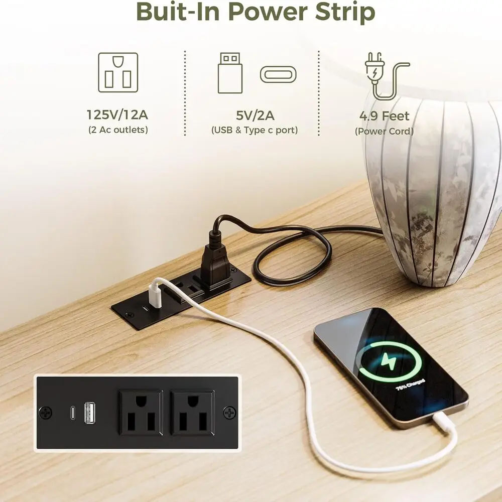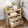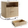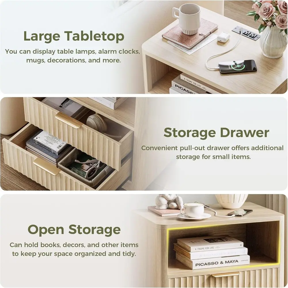 Fluted Night Stand Set Of 2, Modern Nightstand With Charging Station, Drawers And Open Shelves-Bedside Table For Bedroom