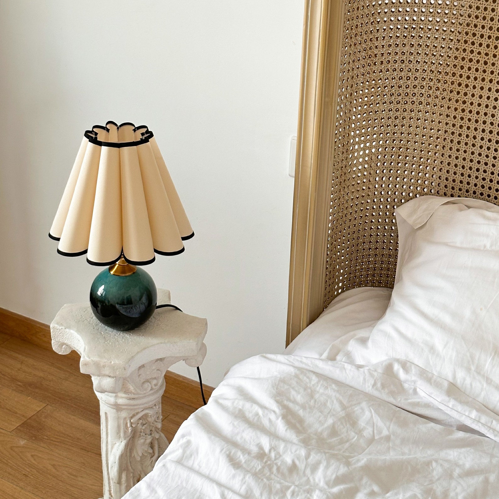Designed to seamlessly blend into modern, retro, and Japandi-style interiors. The minimalist design, featuring a delicately Flower Ruffle shade and a glossy, Green Glaze Ceramic Lamp Base, offers a touch of timeless elegance that can elevate both contemporary and traditional decors. Whether you’re sprucing up your bedroom, living room, or kitchen, this lamp is the perfect accent to refresh your home and makes your home feel more comfortable and welcoming.