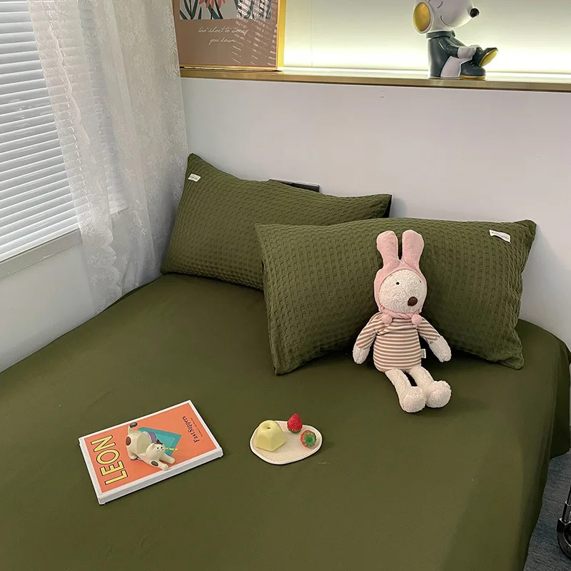 - Elevate your bedroom with our Korean Fashion Checker Four-Piece Set Queen Bedding. Embracing the essence of Korean fashion, this set seamlessly blends style and comfort.