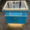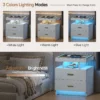 LED Nightstand with Wireless Charging Station,Black Night Stand with 2 Drawers,Glass Top Smart Bedside Table