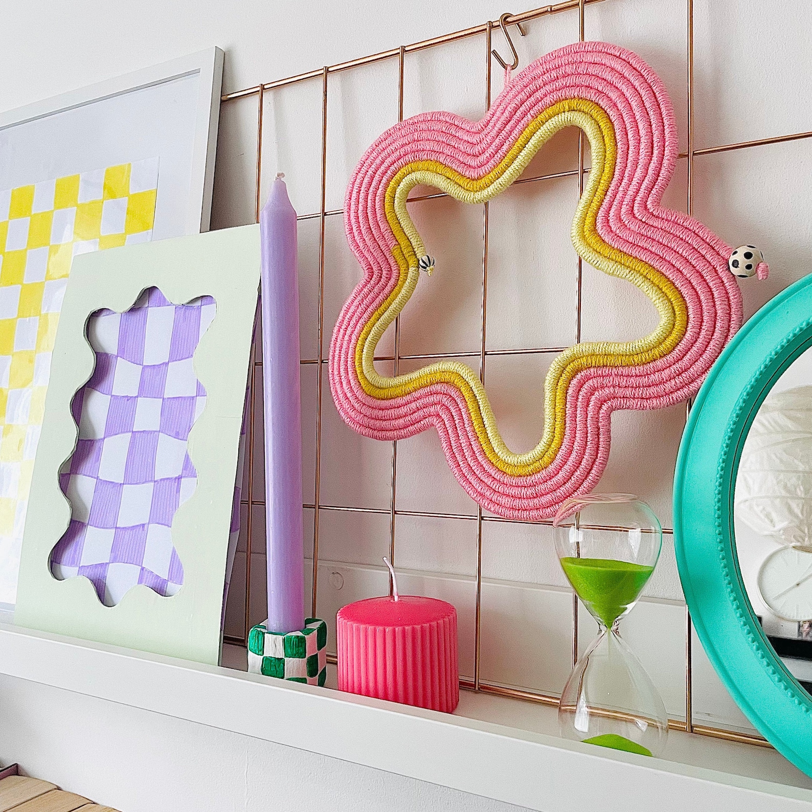 Macrame flower wall hanging, pink and yellow wall art, danish pastel home decor, macrame wall hanging, boho style home decor, nursery decor