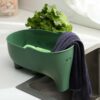 The basket is designed with multiple drainage holes to effectively drain excess water from washed vegetables and fruits.