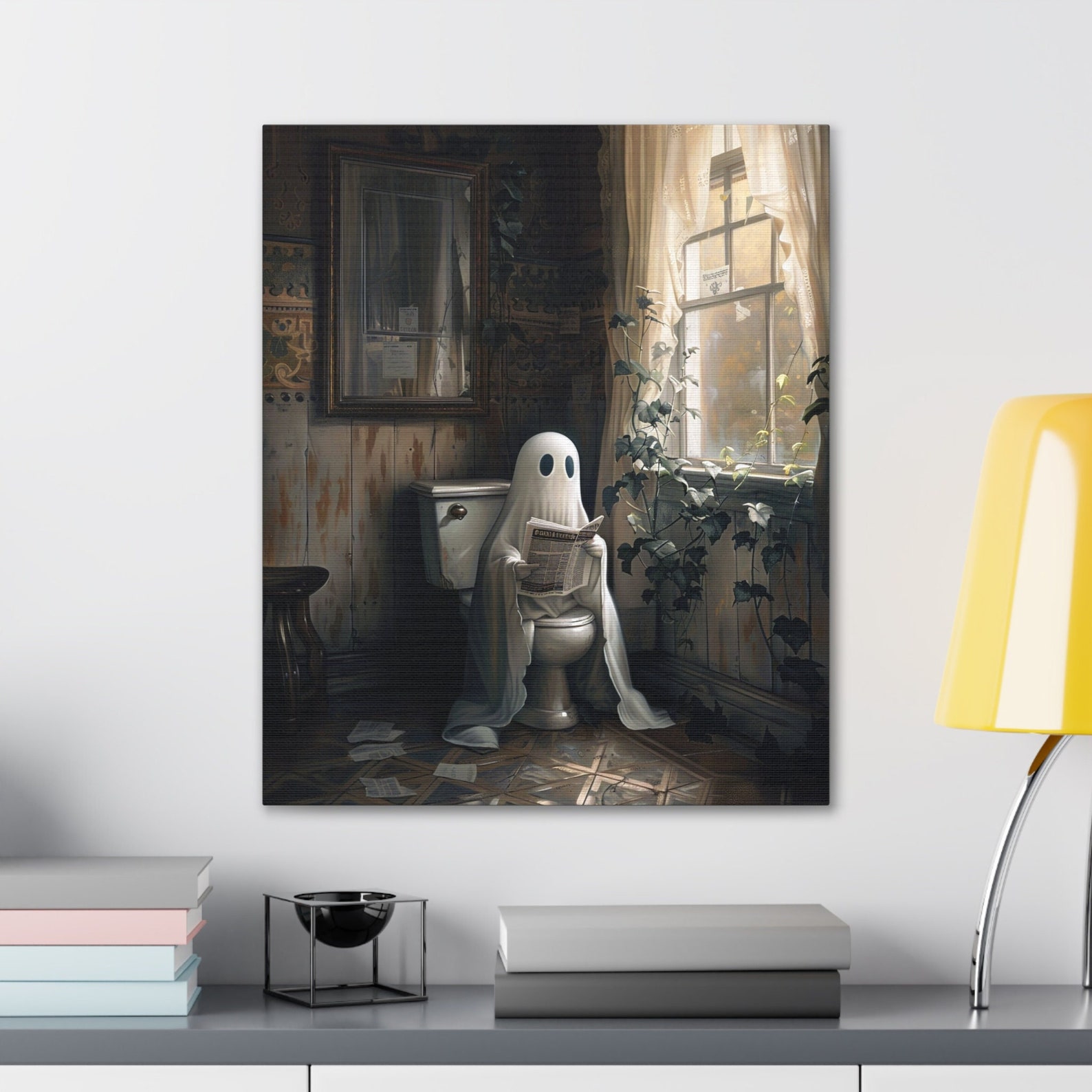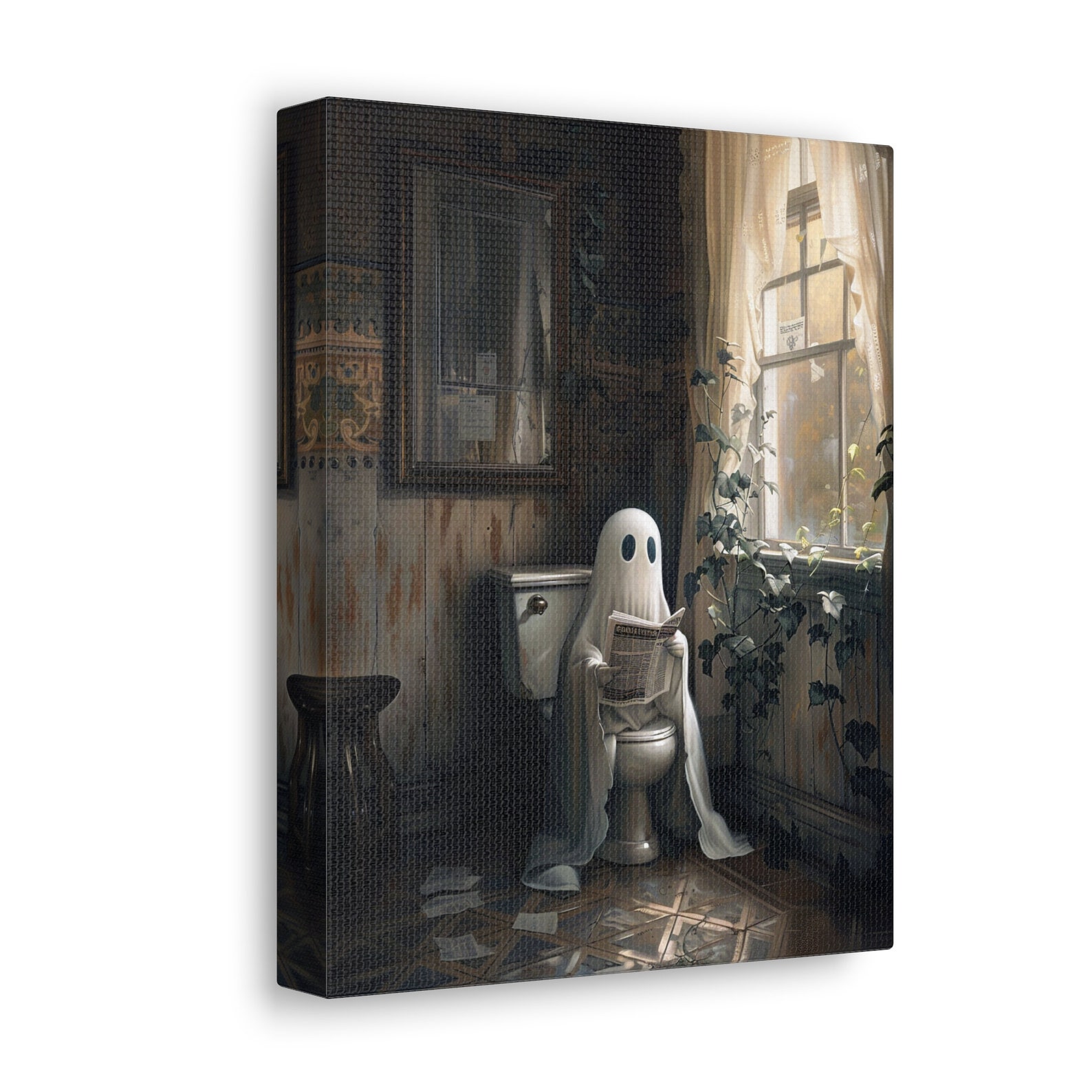 Ghost on Toilet – Canvas Wall Art Ready to Hang