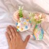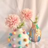 These bud vases make a cute home accent for any boho or modern home. Featuring 3d sculptural dots, modern colorful squiggles, tiny rainbows, tigers, and colorful flower swirls. Retro eclectic boho style.