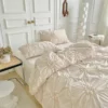 - Crafted with meticulous care, the three-dimensional design elevates the aesthetics of your space. The set includes a double duvet cover that seamlessly combines comfort and style.